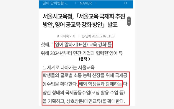 또한 대한민국의 교육을 책임지고 있는 서울교육청에서도 최근 표현중심의 말하기영어의 공교육강화 및